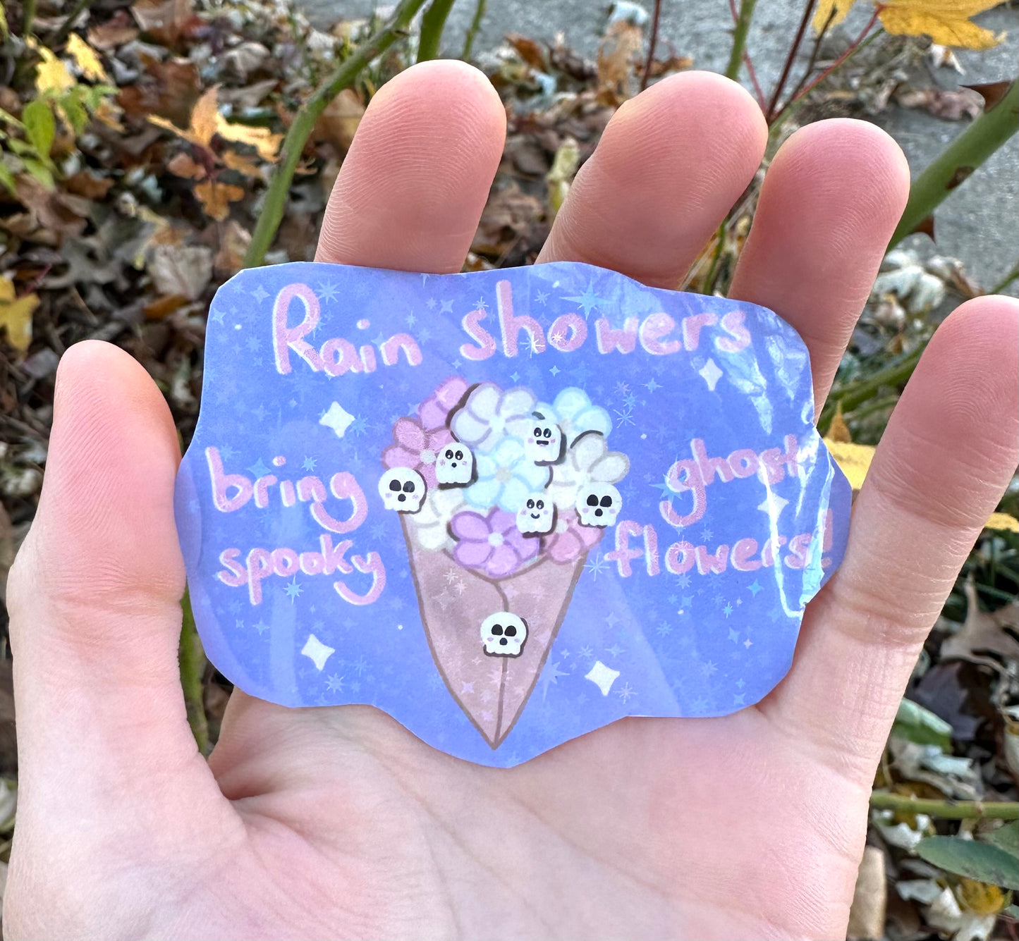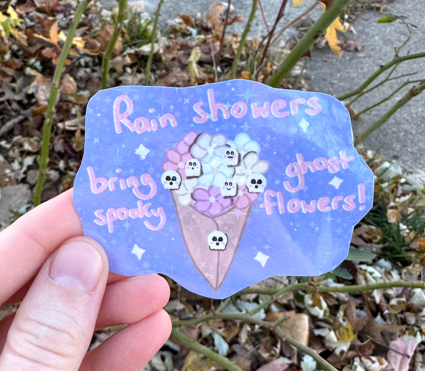 Rain Showers Being Spooky Ghost Flowers Waterproof Vinyl Sticker