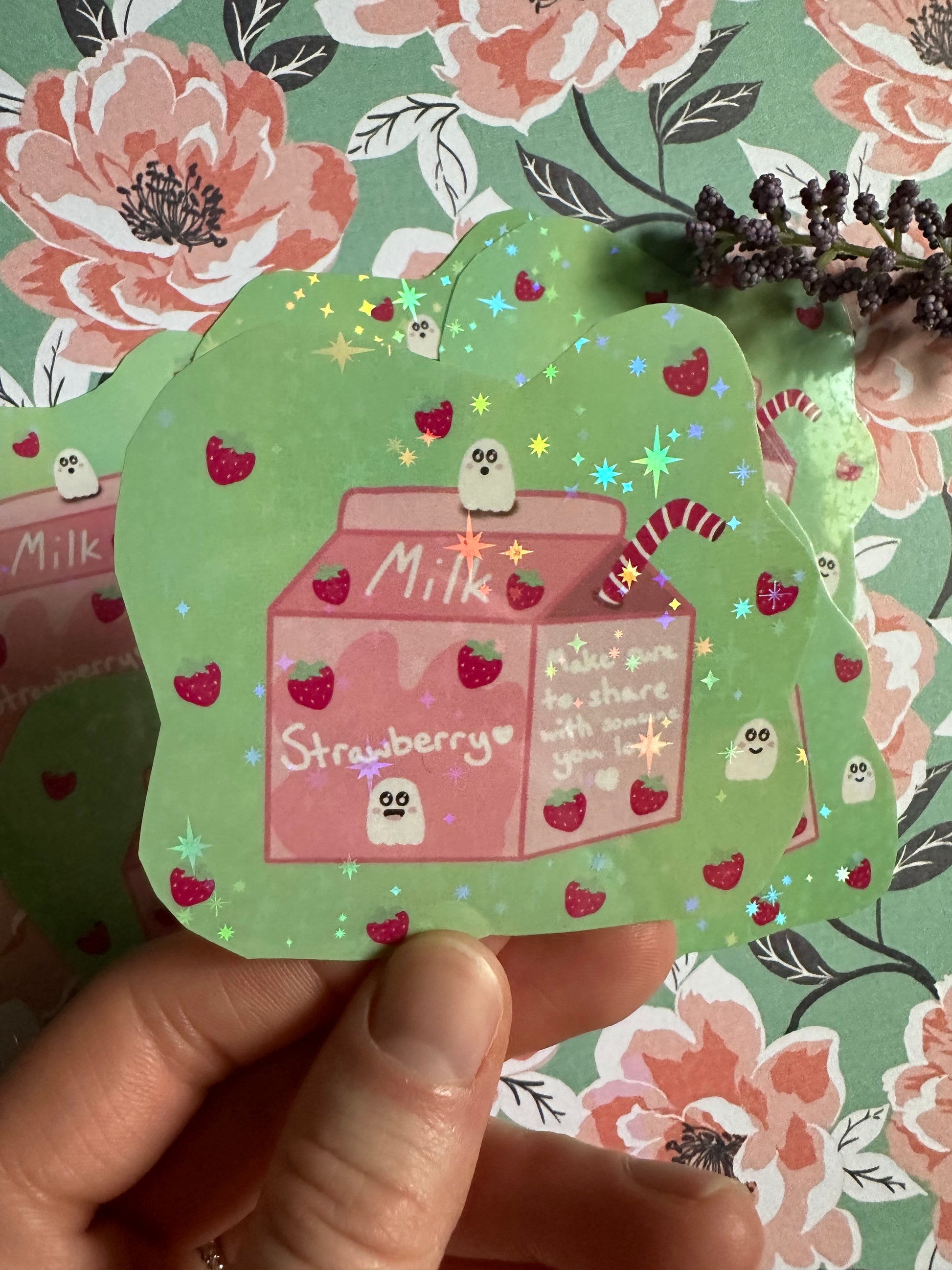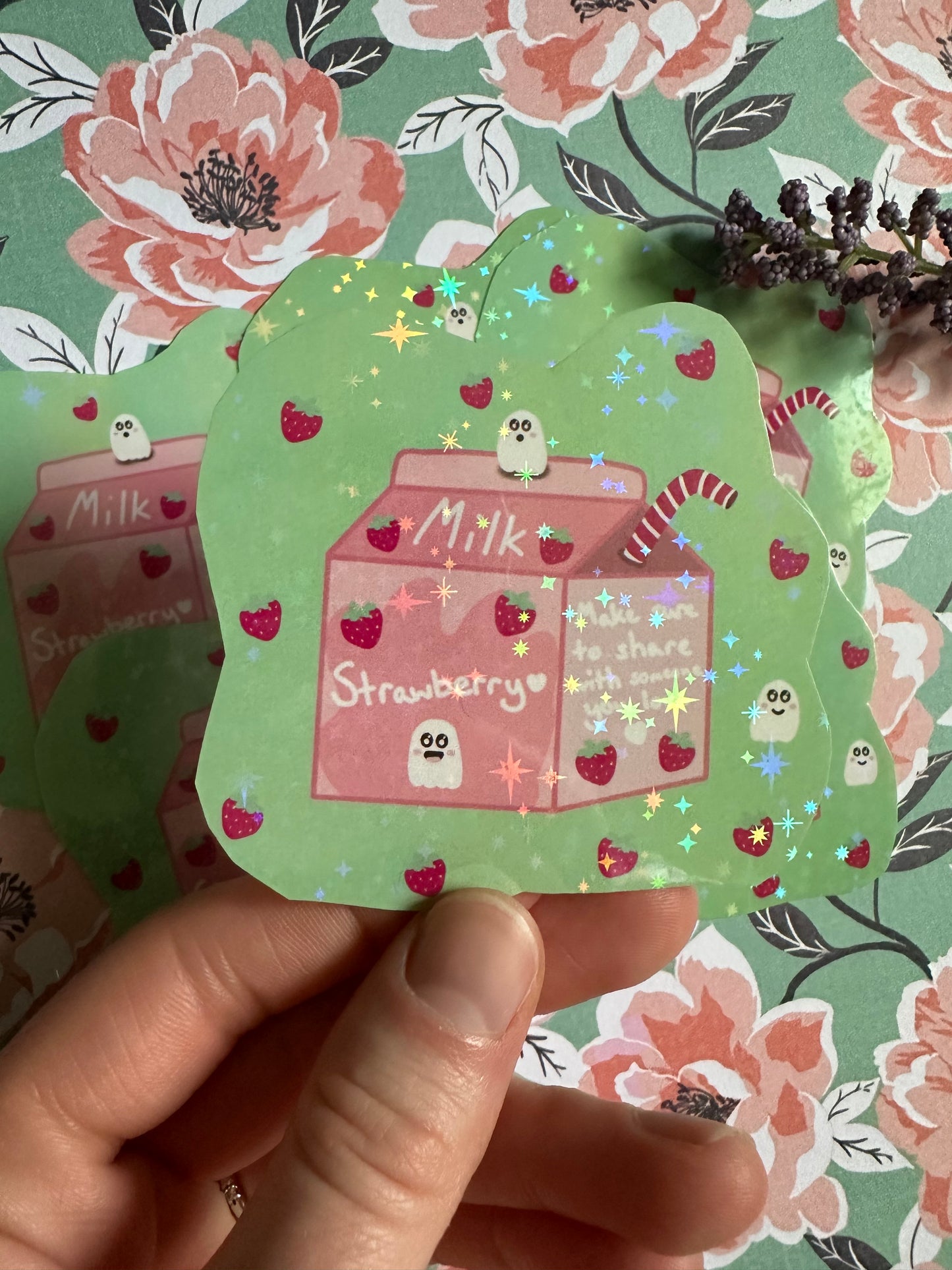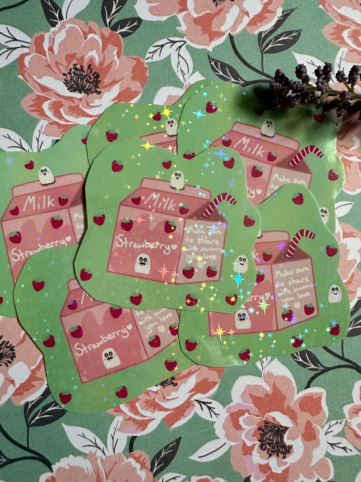 Strawberry Milk and Ghosts Sparkly Vinyl Sticker